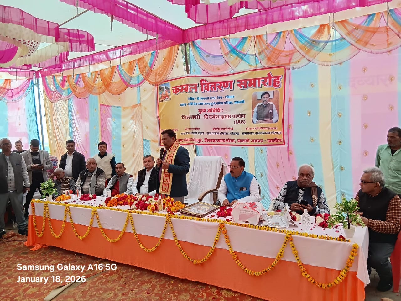 कालपी (जालौन) व्यास जन्मभूमि क्षेत्र में बसेगांव मदारपुर में उप जिला अधिकारी मनोज कुमार सिंह की उपस्थिति में गांव के प्रधान एवं कालपी प्रेस क्लब कालपी के महामंत्री पवनदीप निषाद ने करीब एक सैकड़ा गरीब असहाय लोगों को सर्दी के मौसम में कंबल वितरण किया। ग्राम प्रधान मदारपुर एवं कालपी प्रेस क्लब कालपी के महामंत्री पवनदीप निषाद के द्वारा एक समारोह आयोजित करके उप जिला अधिकारी मनोज कुमार सिंह की उपस्थिति में गरीब असहाय निर्धन लोगों को सर्दी से बचाव के लिए कंबल वितरित किए। इस अवसर पर बोलते