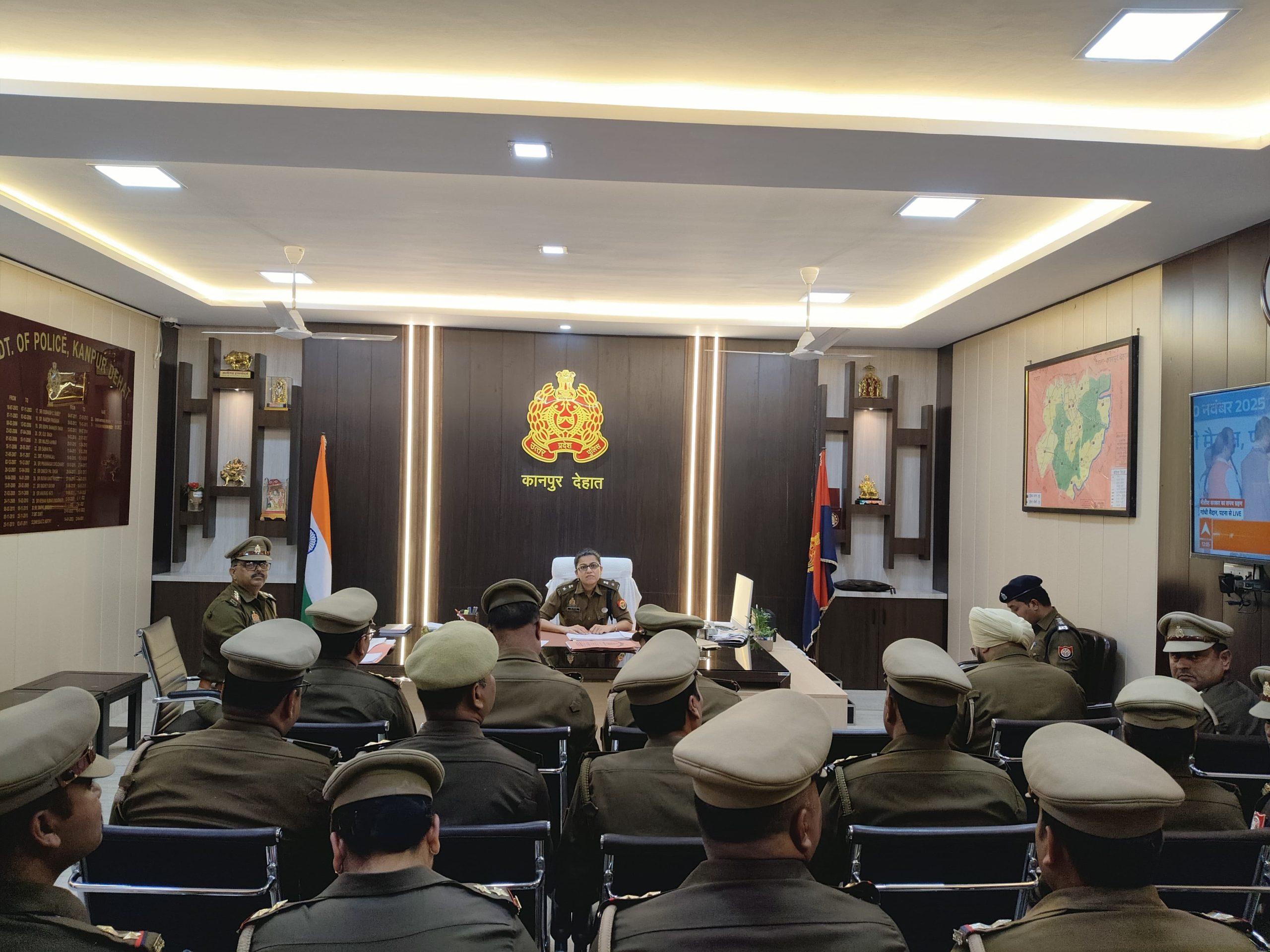 कानपुर देहात आज दिनांक पुलिस अधीक्षक कानपुर देहात श्रद्धा नरेन्द्र पाण्डेय, द्वारा पुलिस कार्यालय में सर्किल अकबरपुर के थाना अकबरपुर, रूरा, गजनेर, रनिया, महिला थाना, अपराधा शाखा एवं थाना साइबर क्राइम के समस्त प्रभारी निरीक्षक/थानाध्यक्ष एवं विवेचकों की लंबित विवेचनाओं के संबंध में समीक्षा बैठक आहूत की गई। बैठक में पुलिस अधीक्षक महोदया द्वारा सभी विवेचकों को लंबित विवेचनाओं का त्वरित, गुणवत्तापूर्ण एवं न्यायोचित निस्तारण करने, चार्जशीट समयबद्ध रूप से प्रस्तुत करने तथा अन्य प्रकरणों (आवेदन-पत्र, शिकायती पत्र, अंतिम प्रतिवेदन आदि) का नियमानुसार समयावधि के अंदर निस्तारण सुनिश्चित करने के निर्देश दिए गए। साथ ही, अकबरपुर सर्किल के समस्त थाना प्रभारियों/थानाध्यक्षों को अपने-अपने थाना क्षेत्रों में संदिग्ध व्यक्ति, वस्तु एवं स्थानों की संघन चेकिंग अभियान चलाने तथा नियमित रूप से पैदल गश्त बढ़ाने हेतु आवश्यक दिशा-निर्देश प्रदान किए गए।*