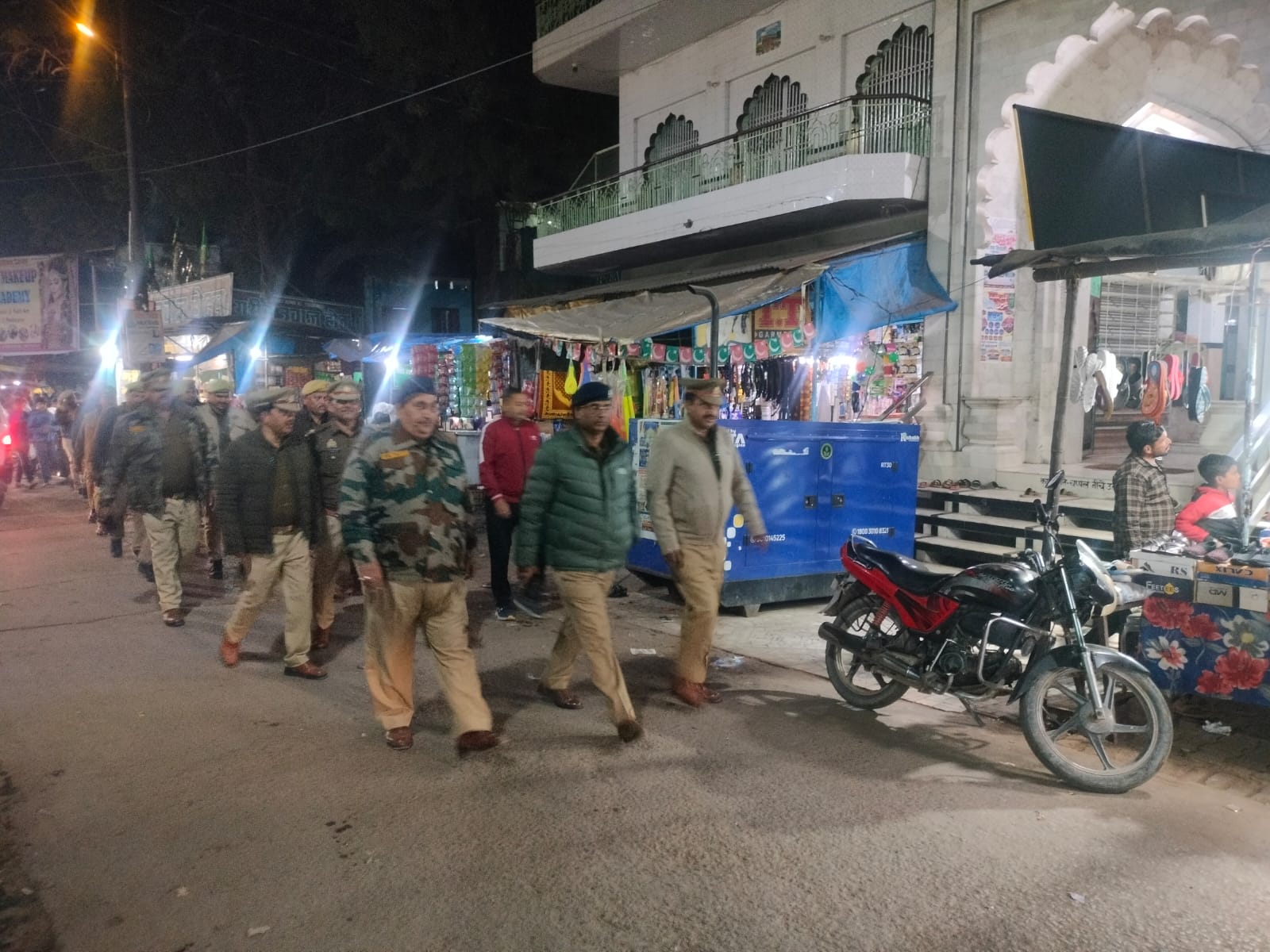 एएसपी की अगुवाई में पुलिस जवानों ने फुटमार्च कर जनता से संवाद किया