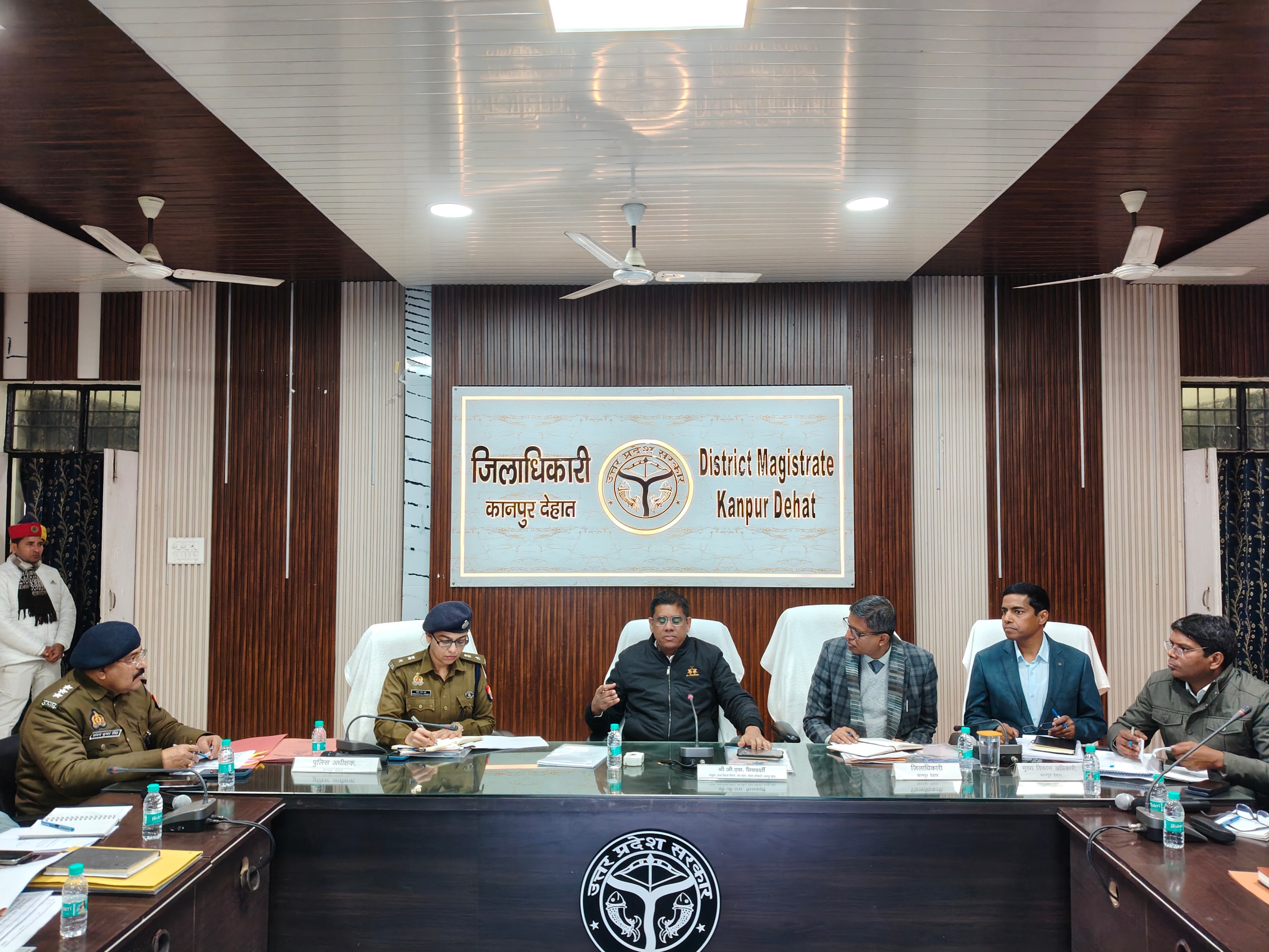 कानपुर देहात के कलेक्ट्रेट सभागार कक्ष में एक उच्चस्तरीय समन्वय बैठक का आयोजन किया गया। बैठक की अध्यक्षता श्री जी.एस. प्रियदर्शी, आयुक्त, ग्राम्य विकास विभाग/नोडल अधिकारी ने की। बैठक में जिलाधिकारी कानपुर देहात श्री कपिल सिंह, पुलिस अधीक्षक कानपुर देहात श्रद्धा नरेन्द्र पाण्डेय, मुख्य विकास अधिकारी श्री विधान जायसवाल के साथ-साथ पुलिस एवं प्रशासन के अन्य वरिष्ठ पदाधिकारी उपस्थित रहे।