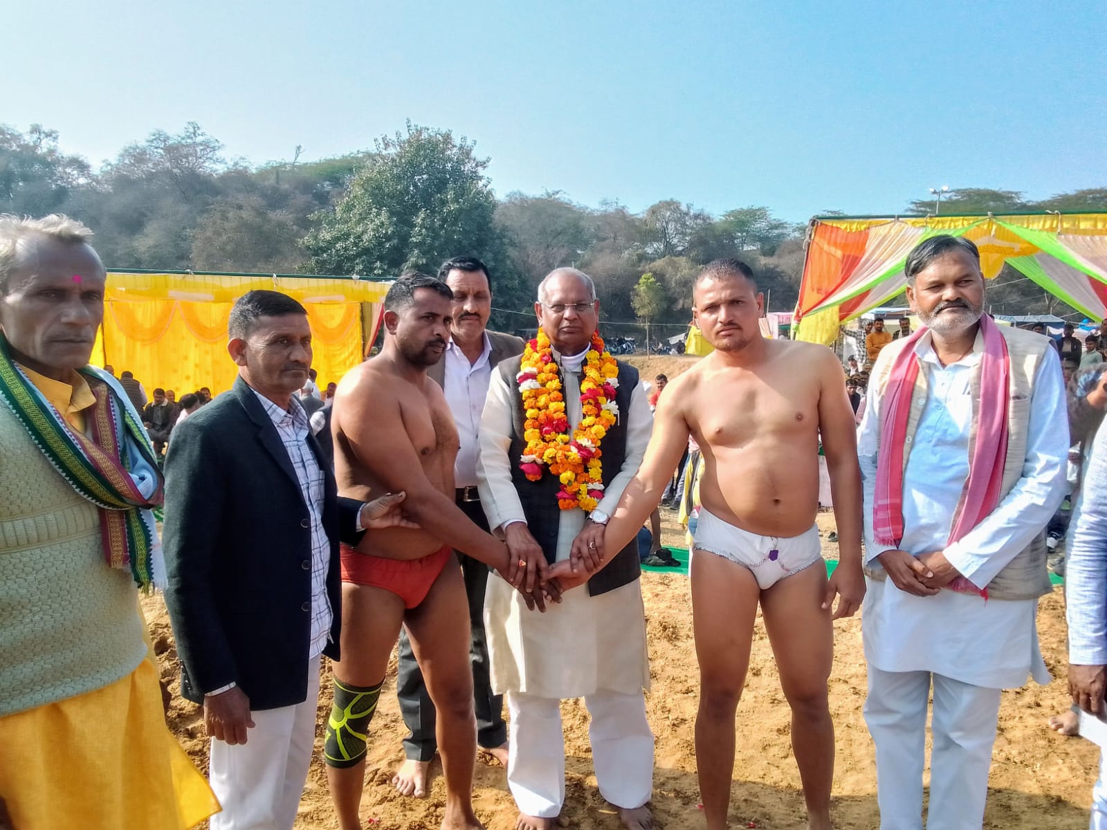 जालौन गरौठा भोगनीपुर के सांसद नारायण दास अहिरवार ने फीता काटकर दंगल का किया उद्घाटन