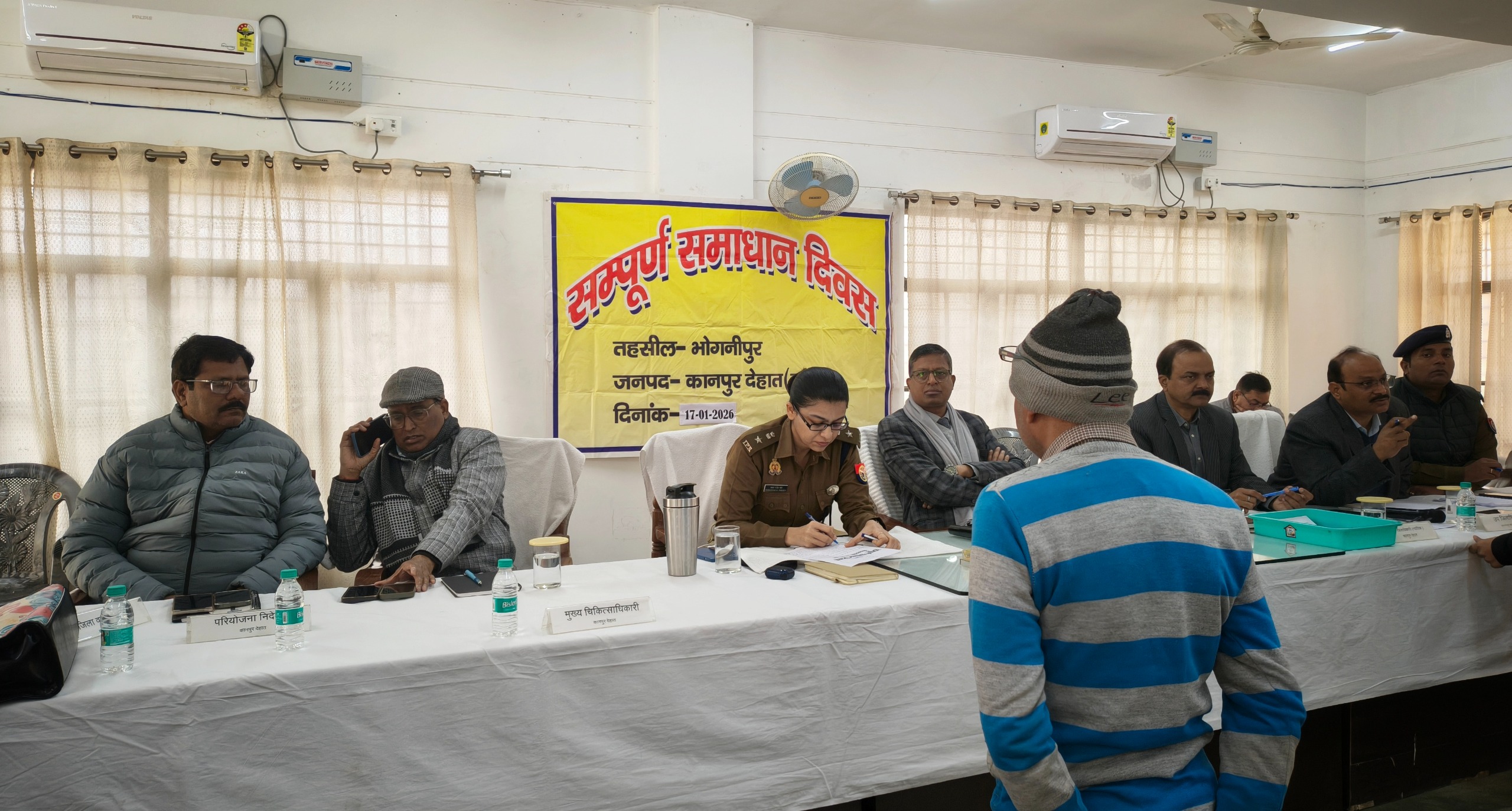 कानपुर देहात कपिल सिंह एवं पुलिस अधीक्षक जनपद कानपुर देहात श्रद्धा नरेन्द्र पाण्डेय द्वारा तहसील अकबरपुर में आयोजित सम्पूर्ण समाधान दिवस के अवसर पर अपनी शिकायत लेकर आये फरियादियों/पीड़ितों की समस्याओं को सुना गया तथा राजस्व व पुलिस विभाग के अधिकारियों/कर्मचारियों को टीम बनाकर मौके पर जाकर शिकायतों को गम्भीरता से लेकर शत-प्रतिशत निष्पक्ष निस्तारण करने हेतु निर्देशित किया गया, साथ ही साथ जिलाधिकारी व पुलिस अधीक्षक द्वारा निर्देशित किया गया कि जमीन सम्बंधित सभी प्रकरणों में राजस्व व पुलिस की टीमों द्वारा संयुक्त रुप से प्रकरण का निस्तारण किया जाए, जिससे फरियादियों/पीड़ितों को अलग-अलग भटकना न पड़े व प्रकरणों का त्वरित व न्यायपूर्ण निस्तारण हो सके।