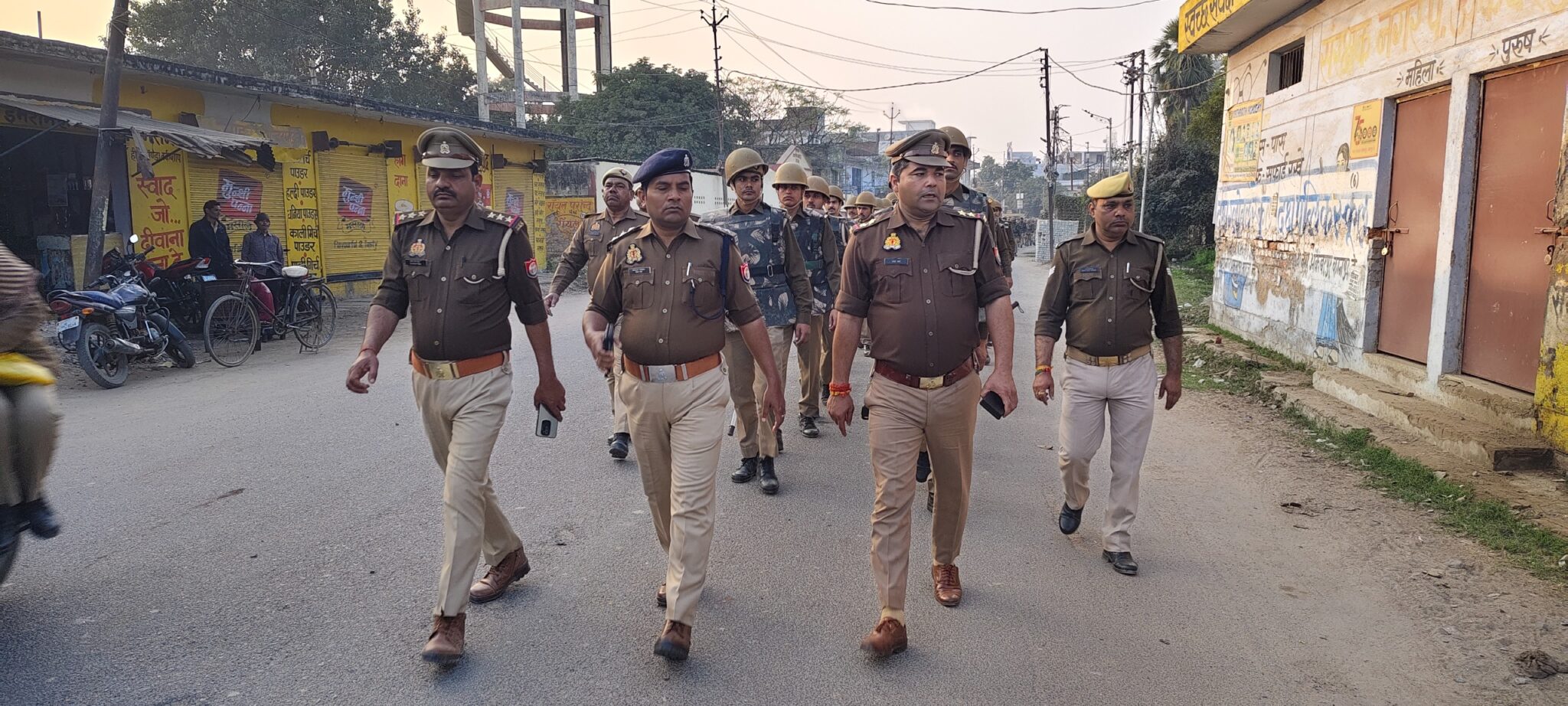 अकबरपुर क्षेत्र में पैदल गश्त कर आम जनमानस को सुरक्षा का संदेश दिया गया।