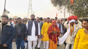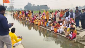 कस्बे के आजाद नगर वार्ड में शुक्रवार को पैदल कलश यात्रा के साथ सप्तम दिवसीय श्रीमदभागवत कथा का शुभारंभ हुआ। भागवत कथा पांडाल से कलशों को लेकर महिलाएं बच्चे पैदल कलश यात्रा में शामिल हुए जो रसूलाबाद कस्बे के झींझक रोड तिराहा से मुख्य चौराहा होते हुए गांधी नगर में स्थित रतनपुर रजबहे के घाट पर पहुंचे। जहां पर पंडित अजय पांडेय ने पूजन के साथ सभी कलशों में जल को भरा। इसके बाद अपने सिर पर कलश लेकर महिलाएं व बच्चे शोभायात्रा में आगे बढ़े। बसंत पंचमी के दिन निकली इस कलश यात्रा में लोग पीले वस्त्र पहनकर शामिल हुए और गाने बाजे के साथ शोभा यात्रा वापस आजाद नगर स्थित दुर्गा देवी मंदिर में हो रही श्रीमद् भागवत कथा पांडाल पहुंची। जहाँ विधि विधान से मंत्रोच्चारणों के साथ कलशों की स्थापना की गई। इसके साथ ही मुख्य सरस कथा वाचक पंडित विनोद कुमार द्विवेदी ने गणपति पूजन के साथ श्रीमद भागवत कथा का आरंभ किया। इस मौके पर प्रमुख रूप से परीक्षित अरुण कुमार मुन्ना कुशवाहा, गीता देवी,मुरारी लाल कुशवाहा, रामचंद्र कुशवाहा, सपा जिला कोषाध्यक्ष गोपाल गुप्ता, वीरू कुशवाहा ,विपिन मिश्रा, पंडित राम शंकर पांडेय, प्रधान अजय यादव, माधुरी गुप्ता, रामकुमार वर्मा, रामसेवक कुशवाहा, सिंधबाज कुशवाहा, निखिल कुशवाहा, प्रेम, रामकिशन कुशवाहा, शेर सिंह कुशवाहा सहित कई लोग मौजूद रहे।