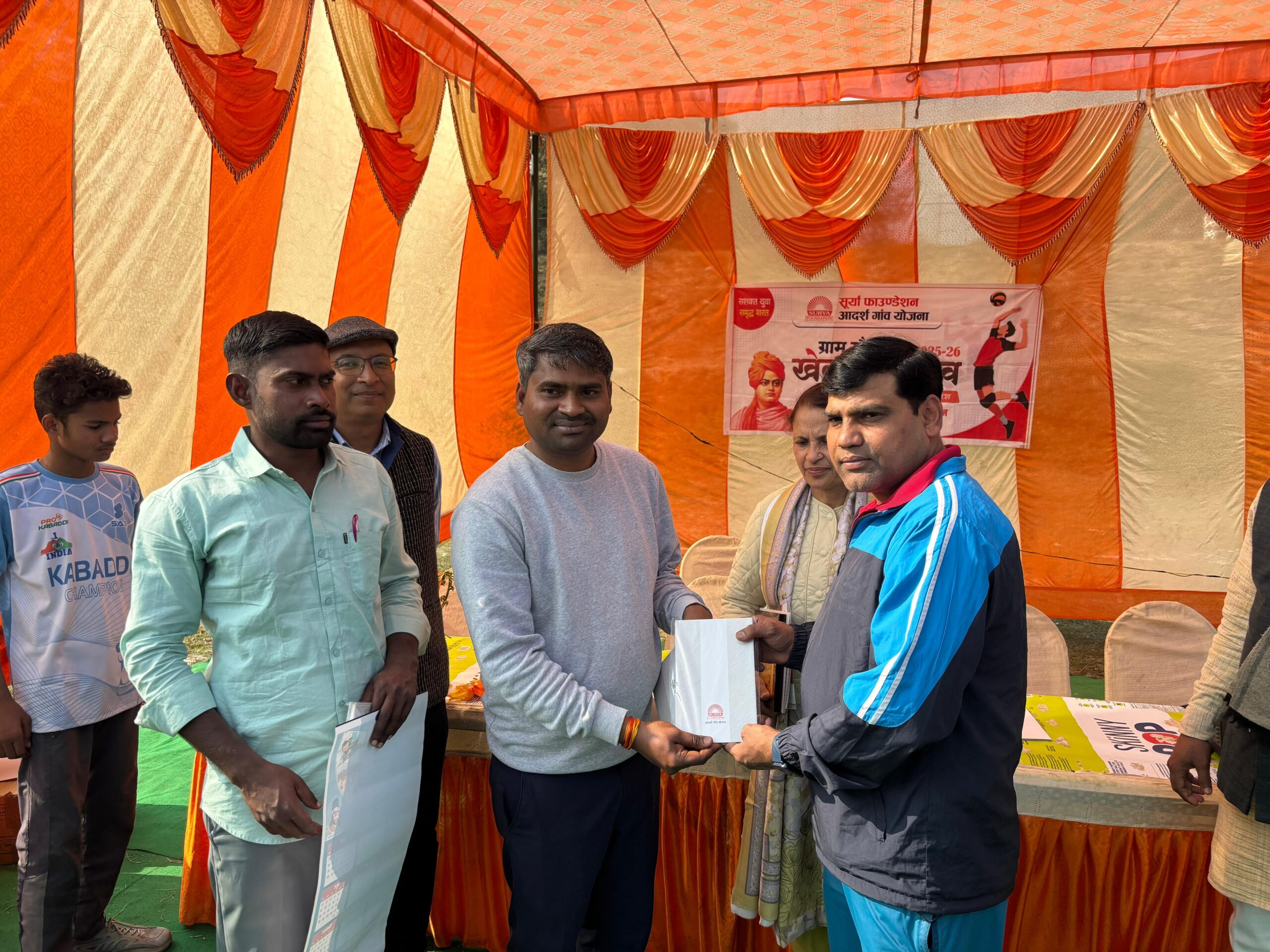 सूर्या फाउंडेशन के तत्वावधान में आयोजित खेलकूद प्रतियोगिता का आज भव्य एवं सफल समापन हुआ। प्रतियोगिता में क्षेत्र के युवाओं और खिलाड़ियों ने विभिन्न खेलों में उत्साहपूर्वक भाग लिया और अपनी प्रतिभा का शानदार प्रदर्शन किया।
