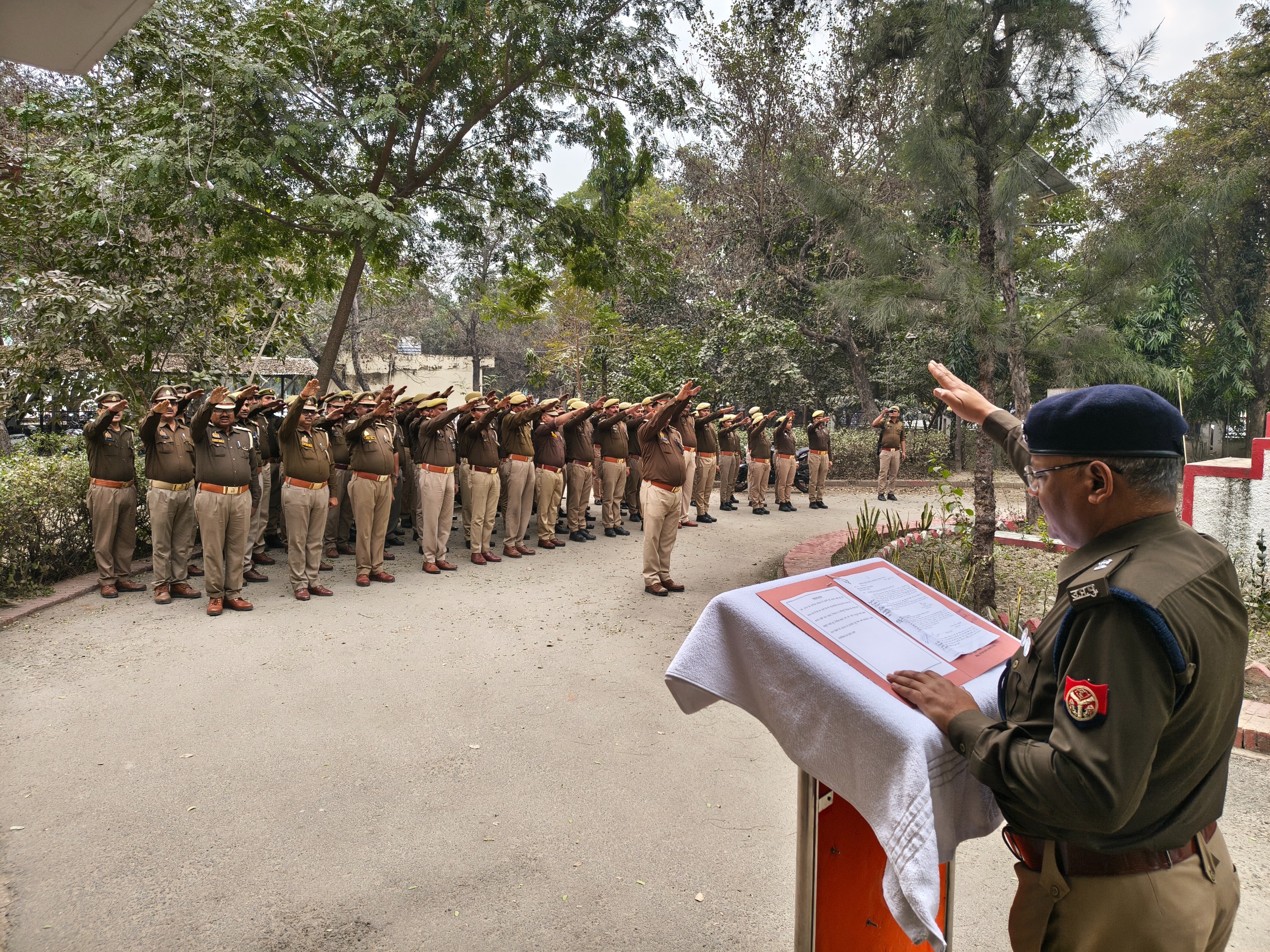 कानपुर देहात 25 जनवरी 2026 को मनाए जा रहे 16वें राष्ट्रीय मतदाता दिवस के उपलक्ष्य में पुलिस अधीक्षक श्रीमती श्रद्धा नरेन्द्र पाण्डेय के निर्देशन में आज पुलिस कार्यालय परिसर में मतदाता शपथ ग्रहण कार्यक्रम आयोजित किया गया। इस अवसर पर अपर पुलिस अधीक्षक द्वारा पुलिसकर्मियों को राष्ट्रीय मतदाता शपथ दिलाई गई। शपथ ग्रहण में सभी पुलिस अधिकारी, कर्मचारी एवं उपस्थित पुलिस बल ने भाग लिया। शपथ के माध्यम से पुलिसकर्मियों ने लोकतंत्र की मजबूती, निष्पक्ष एवं शांतिपूर्ण मतदान सुनिश्चित करने तथा हर मतदाता को जाति, धर्म, वर्ग, भाषा आदि से ऊपर उठकर अपने मताधिकार का प्रयोग करने की प्रतिबद्धता जताई। इस वर्ष राष्ट्रीय मतदाता दिवस की थीम “My India, My Vote” है, जिसकी टैगलाइन “Citizen at the Heart of Indian Democracy” (भारतीय लोकतंत्र के केंद्र में नागरिक) निर्धारित की गई है। अपर पुलिस अधीक्षक महोदय ने कहा कि पुलिस बल लोकतंत्र की रक्षा में महत्वपूर्ण भूमिका निभाता है। मतदाता जागरूकता अभियान में पुलिस की सक्रिय भागीदारी से जनता में मतदान के प्रति उत्साह बढ़ेगा और निर्वाचन प्रक्रिया अधिक मजबूत होगी।