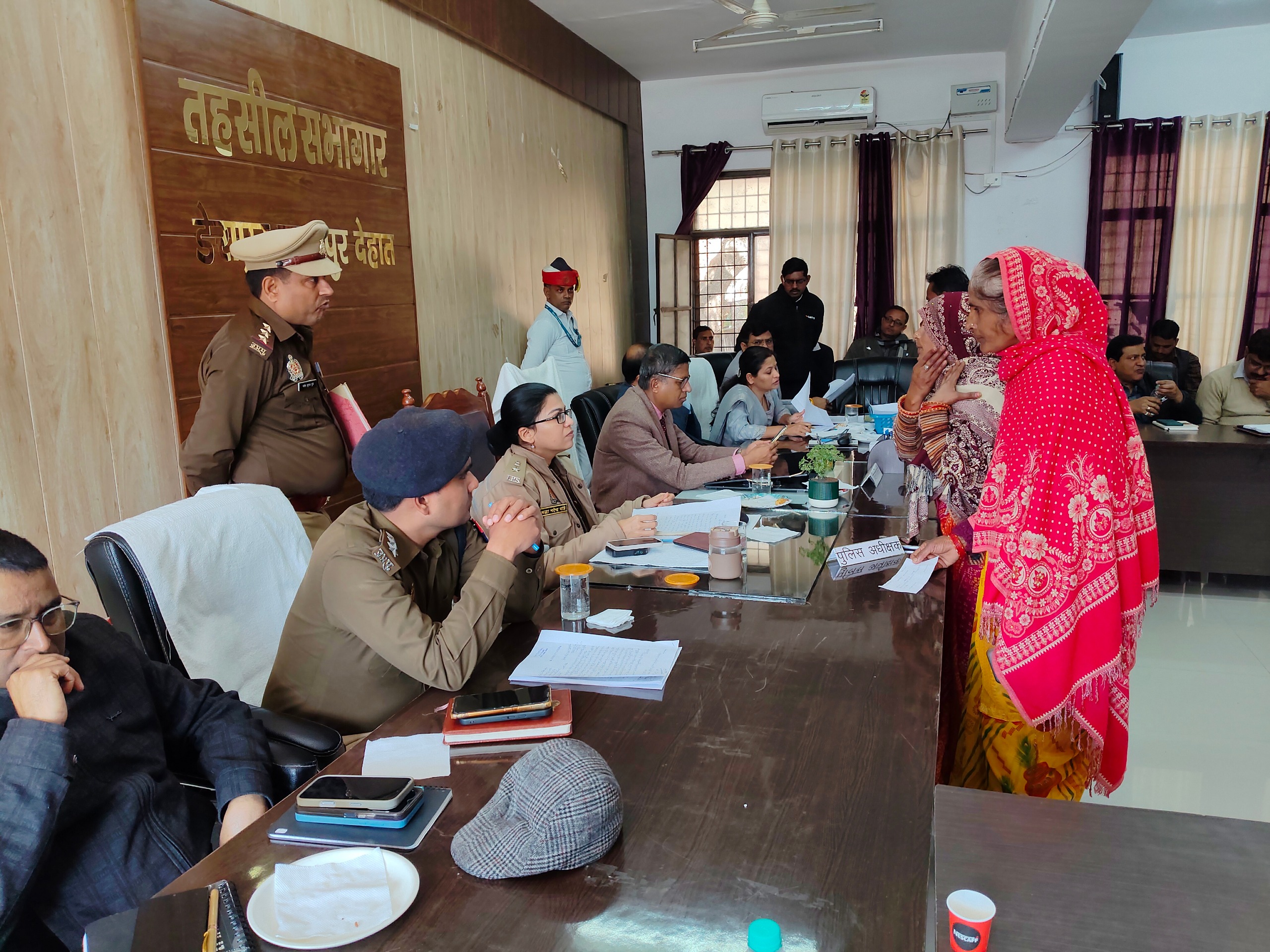 कानपुर देहात जिलाधिकारी कपिल सिंह एवं पुलिस अधीक्षक श्रद्धा नरेन्द्र पाण्डेय द्वारा तहसील डेरापुर में आयोजित सम्पूर्ण समाधान दिवस के अवसर पर अपनी शिकायत लेकर आये फरियादियों/पीड़ितों की समस्याओं को सुना गया तथा जिलाधिकारी एवं पुलिस अधीक्षक ने राजस्व एवं पुलिस विभाग के अधिकारियों/कर्मचारियों को टीम गठित कर मौके पर जाकर सभी शिकायतों का शत-प्रतिशत निष्पक्ष एवं समयबद्ध निस्तारण सुनिश्चित करने के निर्देश दिए। साथ ही, भूमि से संबंधित सभी प्रकरणों में राजस्व एवं पुलिस की संयुक्त टीम द्वारा एक साथ कार्यवाही करने के स्पष्ट निर्देश जारी किए गए, ताकि फरियादियों को बार-बार विभिन्न विभागों के चक्कर न लगाने पड़ें और प्रकरणों का त्वरित, पारदर्शी एवं न्यायपूर्ण निस्तारण हो सके।