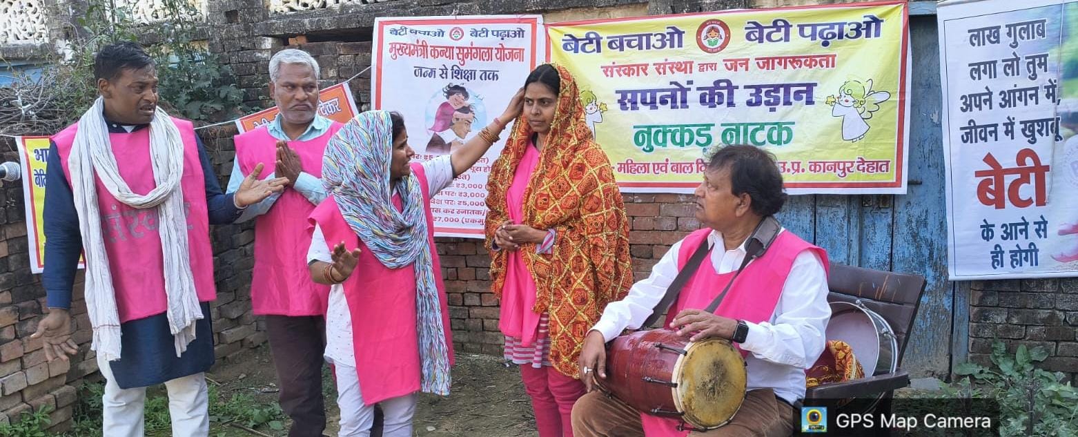 कानपुर देहात जिलाधिकारी कपिल सिंह के निर्देशानुसार एवं अपर जिलाधिकारी (प्रशासन) अमित कुमार के मार्गदर्शन में तथा जिला प्रोबेशन अधिकारी के नेतृत्व मे बेटी बचाओ बेटी पढ़ाओं योजनान्तर्गत जनपद के कम बाल लिंगानुपात वाले विकासखण्ड अमरौधा की ग्राम पंचायत कमालपुर,कल्ला एवं नगीना बंागर, में नुक्कड़ नाटक के माध्यम से जागरूकता कार्यक्रम का आयोजन किया गया। जनपद के कम बाल लिगानुपात वाले विकासखण्ड में नुक्कड़ नाटक के माध्यम से गिरते लैंगिक अनुपात में सुधार लाना, बालिकाओं की शिक्षा एवं सुरक्षा को सुनिश्चित करना, कल्याणकारी सेवाएं उपलब्ध कराने में सुधार, आर्थिक क्षेत्रों में बेटियों की भागीदारी को बढ़ावा देने हेतु प्रचार-प्रसार किया गया साथ ही यह भी बताया कि घटता लिंगानुपात महिलाओं के बुनियादी अधिकारों एवं संविधान द्वारा प्रदत्त जीवन जीने के अधिकार का उल्लंघन है। नुक्कड़ नाटक मे जिला प्रोबेशन कार्यालय से महेन्द्र श्रीवास्तव द्धारा से महिला कल्याण विभाग द्वारा चलाई जा रही योजनाओं जैसे मुख्यमंत्री कन्या सुमंगला योजना, उ0प्र0 मुख्यमंत्री बाल सेवा योजना, बेटी बचाओ-बेटी पढ़ाओ योजना, निराश्रित महिला पेंशन योजना एवं हेल्पलाइन नम्बर जैसे-181, 1090, 112, 1098 ,1076, 1930 आदि तथा बाल लिंगानुपात में सुधार करने एवं बालिकाओं की शिक्षा सुनिश्चित कराने हेतु प्रचार-प्रसार किया गया व उपस्थित लोगो को पम्पलेट वितरित किये गये बाल विवाह रोकथाम हेतु शपथ कराई गई। नुक्कड़ नाटक कार्यक्रम में ग्राम प्रधान, आगनबाड़ी, नुक्कड़ नाटक टीम से मुकेश श्रीवास्तव एवं ग्राम के अन्य लोग भी उपस्थित रहें।