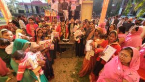 कानपुर देहात भारतीय जनता पार्टी द्वारा शनिवार को केंद्रीय बजट 2026-27 एवं ‘विकसित भारत जी राम जी किसान संवाद’ कार्यक्रम का आयोजन किया गया। कार्यक्रम का नेतृत्व उत्तर प्रदेश सरकार की राज्यमंत्री एवं क्षेत्रीय विधायक प्रतिभा शुक्ला ने किया। आयोजन में विधानसभा क्षेत्र के विभिन्न गांवों से बड़ी संख्या में किसान, महिलाएं और ग्रामीणजन शामिल हुए। कार्यक्रम स्थल पर उत्साहपूर्ण वातावरण देखने को मिला तथा ग्रामीणों ने योजनाओं के प्रति अपनी जिज्ञासाएं भी व्यक्त कीं। कार्यक्रम के दौरान विभिन्न विभागों द्वारा स्टॉल लगाए गए, जहां उपस्थित लोगों की समस्याओं का मौके पर ही निस्तारण किया गया। राज्यमंत्री प्रतिभा शुक्ला के निर्देश पर अधिकारियों ने पात्र लाभार्थियों को योजनाओं की जानकारी दी और आवश्यक प्रपत्रों की कार्यवाही भी पूरी कराई। इस अवसर पर गर्भवती महिलाओं की गोद भराई तथा नौनिहाल शिशुओं का अन्नप्राशन संस्कार भी संपन्न कराया गया। लाभार्थियों ने सरकार की योजनाओं को उपयोगी बताते हुए आभार भी व्यक्त किया।