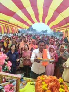 कानपुर कन्नौज ग्राम महमूदपुर खास छिबरामऊ में चल रही श्रीमद्भागवत कथा एवं श्री विष्णु महायज्ञ का आज पंचम दिवस भगवान कृष्ण की गोवर्धन लीला और कथा का महत्व बताया गया , कथा वाचक ने श्रद्धालुओं से भक्ति के मार्ग पर चलने की अपील की बताया कि माता पिता से चरणों से बड़ा और कोई तीर्थ नहीं है आचार्य अवधेश पांडे जी ने बताया भागवत कथा श्रवण करने से जीवन में सुख शांति का समावेश होता है धर्म के प्रति आस्था बढ़ती है इसलिए इस कथा का सुनने का शुभ अवसर सभी को नहीं छोड़ना चाहिए ।