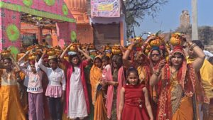 ग्राम कोरवा खुर्द में धूमधाम से निकली कलश यात्रा