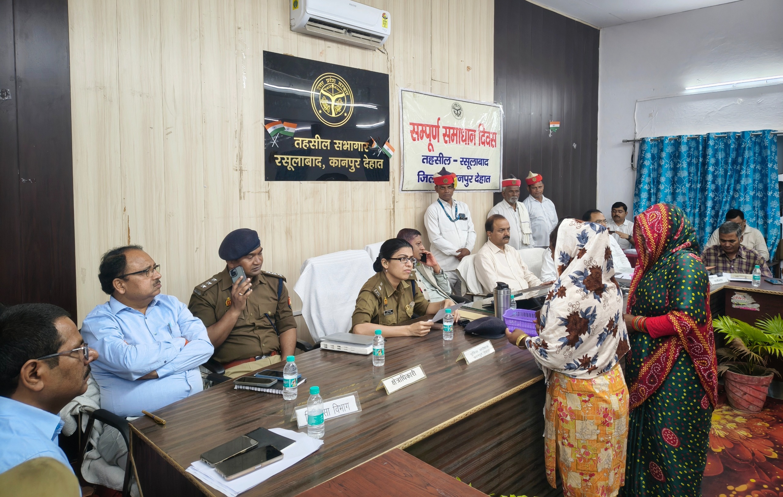 कानपुर देहात के तहसील रसूलाबाद में सम्पूर्ण समाधान दिवस का आयोजन किया गया। जिलाधिकारी कपिल सिंह और पुलिस अधीक्षक श्रद्धा नरेन्द्र पाण्डेय ने फरियादियों की समस्याएं सुनीं और राजस्व एवं पुलिस विभाग के अधिकारियों को टीम गठित कर मौके पर जाकर शिकायतों का निस्तारण करने के निर्देश दिए। जिलाधिकारी ने भूमि से संबंधित प्रकरणों में राजस्व एवं पुलिस की संयुक्त टीम द्वारा एक साथ कार्यवाही करने के निर्देश जारी किए, ताकि फरियादियों को बार-बार चक्कर न लगाने पड़ें और प्रकरणों का त्वरित, पारदर्शी एवं न्यायपूर्ण निस्तारण हो सके।