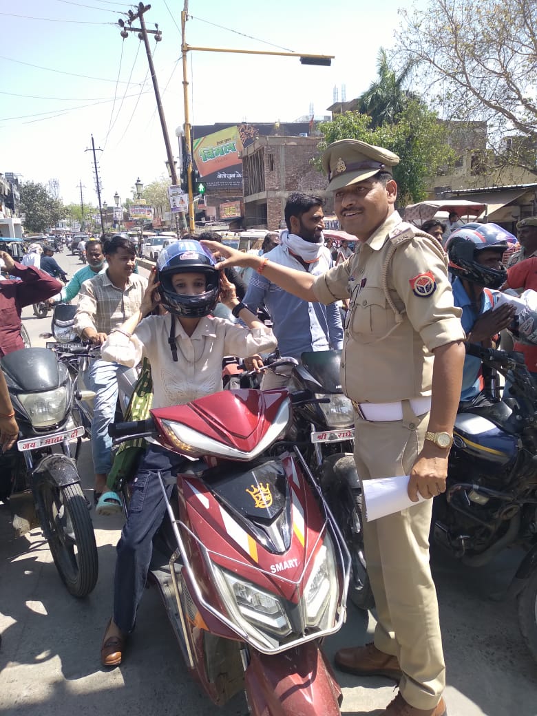 यातायात जागरूकता कार्यक्रम के अंतर्गत शहीद भगत सिंह चौराहे पर हेलमेट वितरण आयोजित