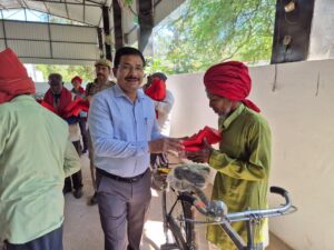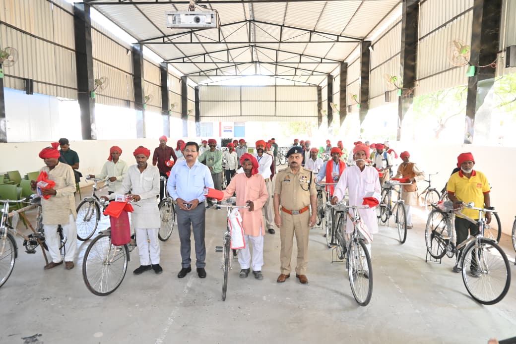 जालौन चैत्र नवरात्रि के पावन अवसर पर जालौन में सुरक्षा व्यवस्था को और अधिक सुदृढ़ एवं प्रभावी बनाने की दिशा में एक सराहनीय पहल करते हुए जिलाधिकारी राजेश कुमार पाण्डेय व पुलिस अधीक्षक डॉ. दुर्गेश कुमार ने पुलिस लाइन परिसर में आयोजित कार्यक्रम के दौरान पुलिस विभाग के चौकीदारों को साइकिल, टॉर्च एवं साफा वितरित किया।
