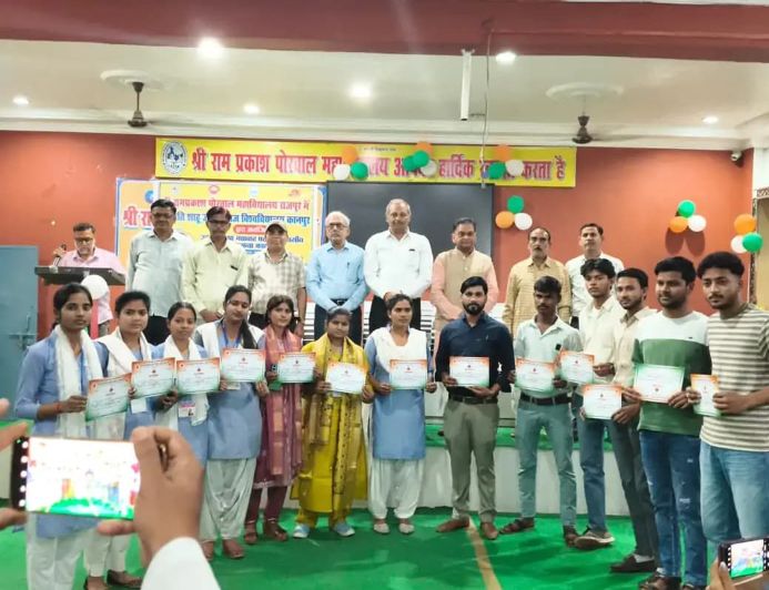 कानपुर देहात के राजपुर स्थित राम प्रकाश पोरवाल महाविद्यालय में उघमिता एव नवाचार पर एक दिवसीय जागरूकता कार्यशाला का आयोजन किया गया यह कार्यशाला छत्रपति शाहूजी महाराज विश्वविद्यालय सीएसजेएमयू कानपुर और शासन के सहयोग से आयोजित की गई थी कार्यशाला का शुभ आरंभ पोरवाल ग्रुप ऑफ़ इंस्टिट्यूशन के चैयरमेन डॉ अनिल कुमार पोरवाल विश्वविद्यालय से आए नवाचार अधिकारी अनिल कुमार त्रिपाठी महाविद्यालय के प्राचार्य डॉ अरविंद कुमार द्विवेदी और मैनेजमेंट प्रभारी सुनील शुक्ला ने किया सुनील शुक्ला ने छात्र-छात्राओं को संबोधितकरते हुए संबोधित करते हुए बताया कि तकनीक को अपने ऊपर हावी न होने दें क्योंकि भविष्य में आर्टिफिशियल इंटेलिजेंस एआई मानव मस्तिष्क पर हावी हो सकती है उन्होंने रतन टाटा के बारे में भी चर्चा की नवाचार अधिकारी अनिल कुमार त्रिपाठी ने धीरूभाई अंबानी के संघर्ष और उनके समाज की स्थापना का उदाहरण दिया उन्होंने बताया कि कैसे जामनगर में तेल शोधक कारखाना लगाने के बाद प्रदूषण विभाग के नोटिस पर अंबानी ने अपनी जमीन पर आम के पेड़ लगाकर पर्यावरण को संतुलित किया और इन फलों का निर्यात का नंबर वन निर्यातक का दर्जा प्राप्त किया उन्होंने शासन द्वारा 5 लाख 25 लाख और 2करोड़ रुपए तक श्रण उपलब्ध कराने की जानकारी भी दी कार्यक्रम के समापन पर चेयरमैन डॉ अनिल कुमार पोरवाल में छात्रों को संबोधित करते हुए कहा है कि बिना मेहनत और लग्न की सफलता प्राप्त नहीं की जा सकती है उन्होंने बताया कि शासन की योजनाओं के तहत 5 लाख से 10 करोड़ तक का ब्याज मुक्त अनुदान उपलब्ध है जिसका लाभ उठाकर छात्र अपना उघम शुरू कर सकते हैं डॉक्टर पोरवाल ने यह भी घोषणा की है कि अंग्रेज सत्र से महाविद्यालय में एनसीसी पाठ्यक्रम शुरू होगा जिसमें छात्रों को ए,,बी और सी सर्टिफिकेट कोर्स करने का अवसर मिलेगा इससे छात्रों को पुलिस मिलिट्री और अन्य रक्षा सेवाओं की नौकरियां में 15 अंकों का वेटज लाभ मिलेगा