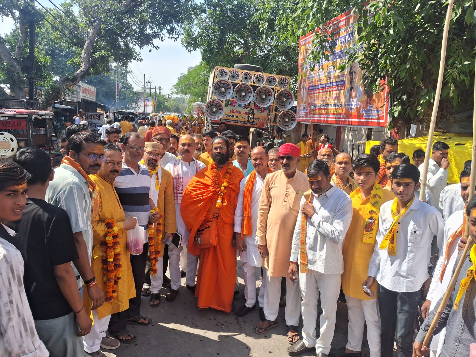 भक्त गण कलश यात्रा में चलकर यमुना मईया का जल लेकर जय नारों से शिव महापुराण स्थल पहुंचे