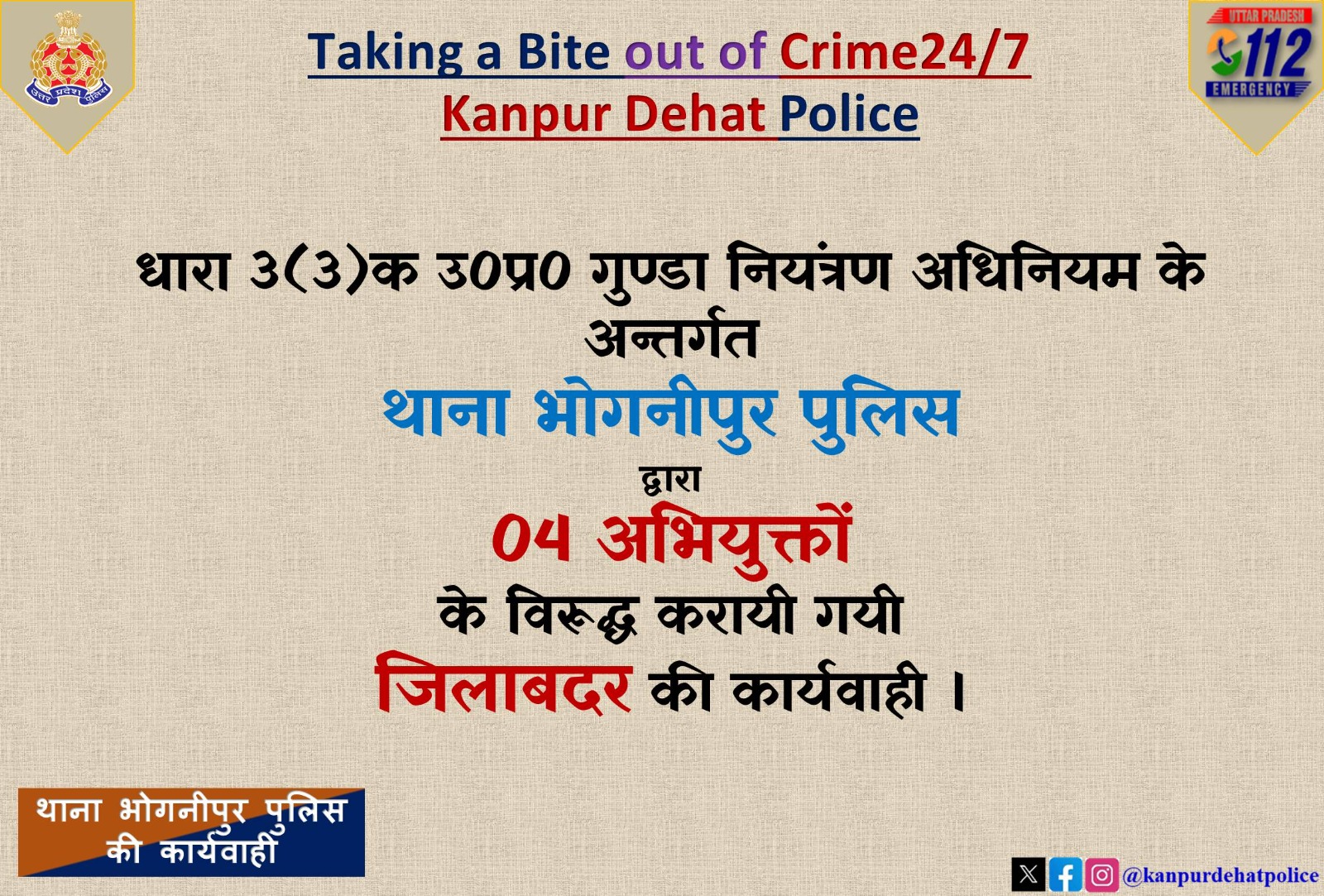 गुंडा एक्ट में बड़ी कार्रवाई, चार अभियुक्त एक माह के लिए जिलाबदर