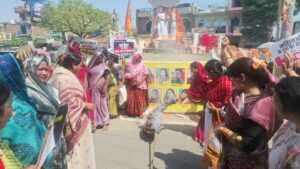 पदयात्रा के बाद जिला अध्यक्ष रेणुका अध्यक्ष रेणुका सचान की अगवाई में कांग्रेस एवं विपक्षी पार्टियों का पुतला दहन किया गया