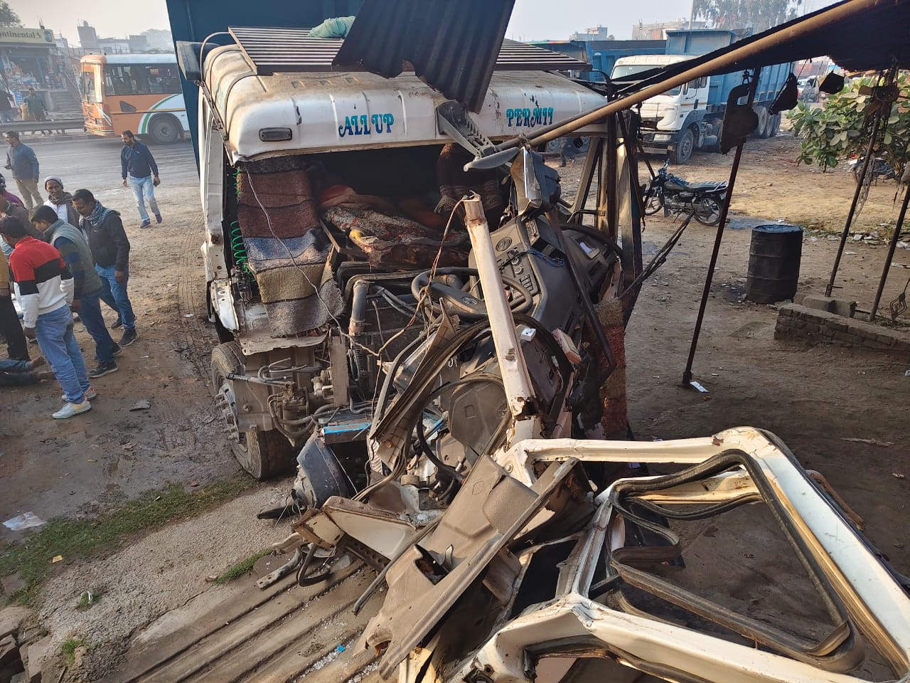 तेज रफ्तार से आ रही ट्रक ने एक डंपर के केबिन में मारी जोरदार टक्कर