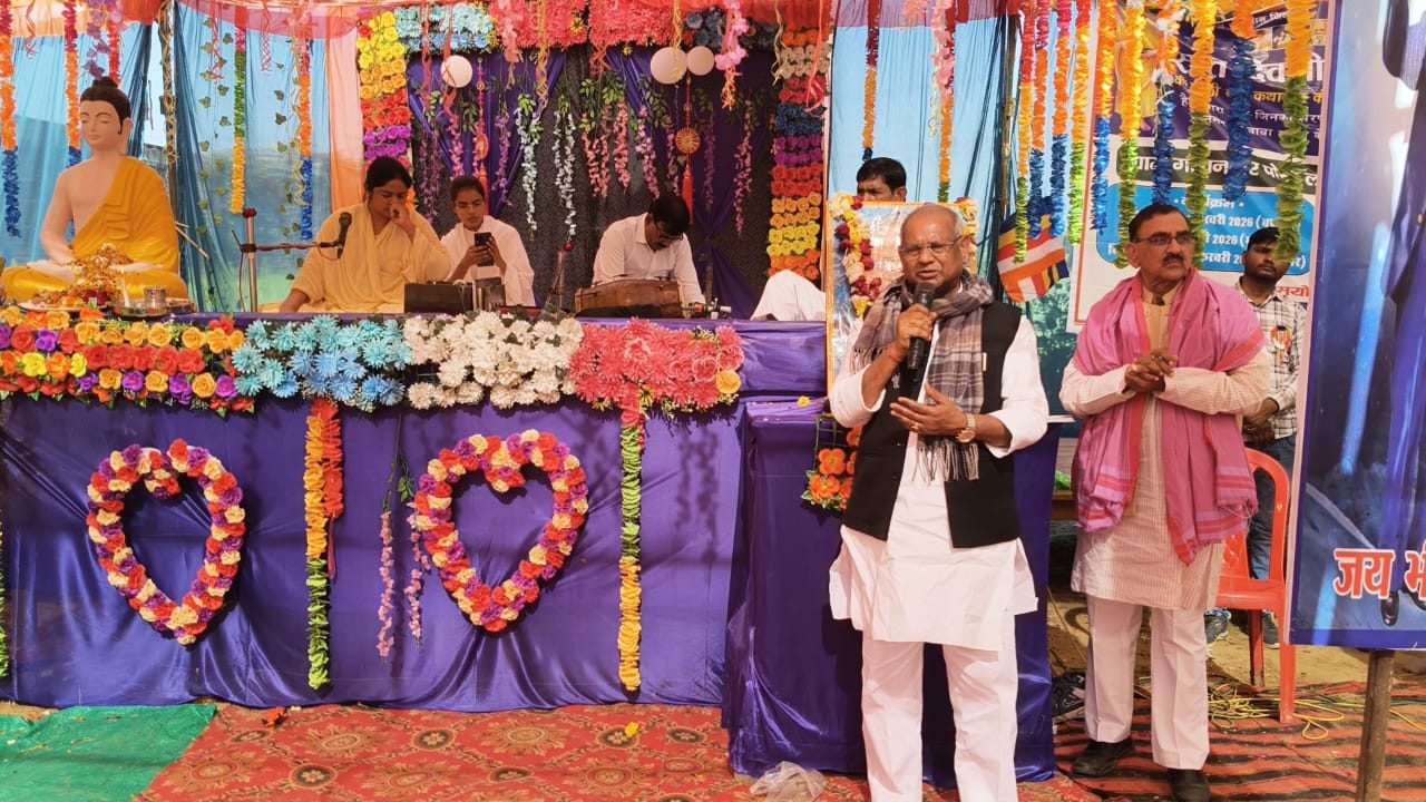 गोरा नगर की बुद्ध कथा में समाजवादी पार्टी के सांसद नारायणदास अहिरवार ने ग्रामीणों को किया संबोधित।।।